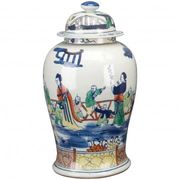 20" TALL CHINESE ORIENTAL POLYCHROME PORCELAIN GINGER JAR WITH FIGURES