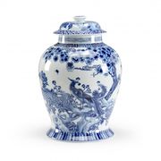 CHELEA HOUSE 382209 PEACOCK COVERED JAR ginger jar blue/wt porcelain