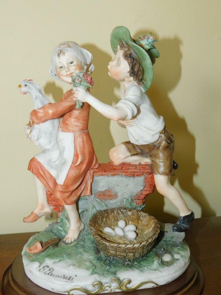 GUISEPPE ARMANI CAPODIMONTE FIGURINE CHILDREN WITH CHICKENS 9.5 IN