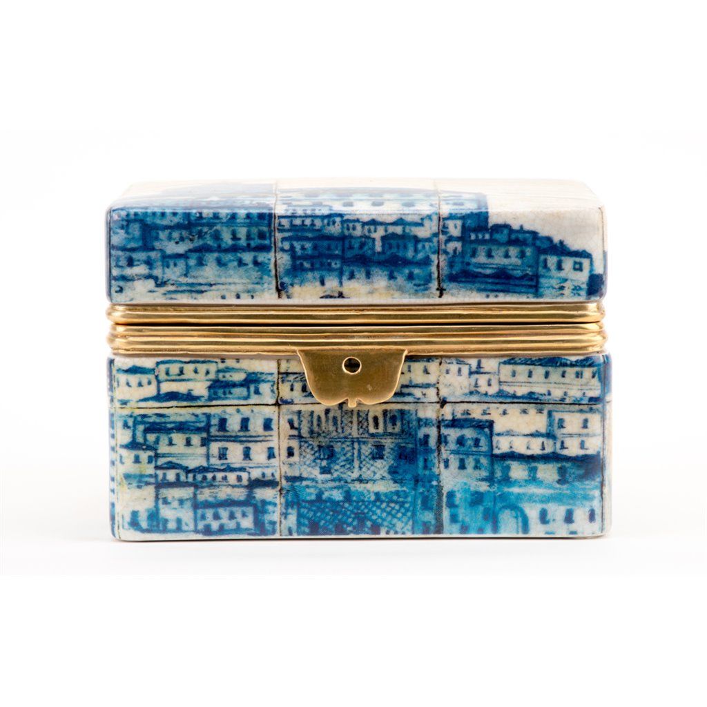 Oriental Blue and white scenery lidded and hinged rectangular box