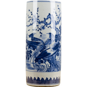 ORIENTAL CHINESE PORCELAIN BLUE AND WHITE UMBRELLA STAND WITH BIRDS 20"