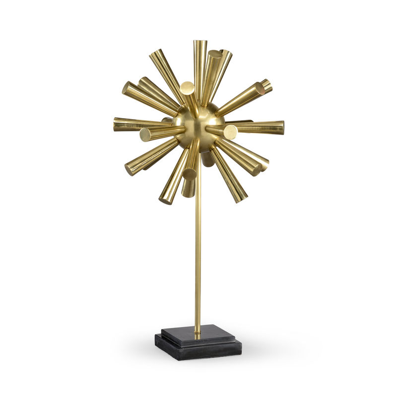 HORNBURST ON STAND IS A VERSATILE ACCESSORY THAT WILL COMPLEMENT ANY DESIGN STYLE. THIS 27.5" SCULPTURE FEATURES AN ANTIQUE BRASS FINISH AND STANDS ON A NATURAL BLACK MARBLE BASE. THIS MID-CENTURY MODERN ACCENT WILL BRING DIMENSION AND STYLE TO ANY FLAT SURFACE THROUGHOUT YOUR HOME OR OFFICE.
