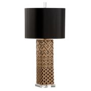 INSPIRED BY NATIVE AMERICAN TEXTILES AND NAMED FOR THE FOURTH PRINCIPLE OF KWANZAA MEANING COOPERATIVE ECONOMICS, THE UJAMAA LAMP, PART OF THE CHERYL LUCKETT COLLECTION FOR WILDWOOD, WILL PROVIDE VISUAL TEXTURE AND CULTURE TO A VARIETY OF SPACES. (LATTE BROWN: TCX 17-1044, DARK CHOCOLATE: TCX 19-1009)