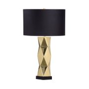 ENHANCE YOUR BEDROOM OR LIVING ROOM DECOR WITH THIS STYLISH GOLD TABLE LAMP. A BLACK DRUM SHADE AND NATURAL BLACK MARBLE MOUNT COMPLETE THIS MODERN CONTEMPORARY DESIGN WHILE THE GLOSSY SCULPTURAL BASE REFLECTS LIGHT THROUGHOUT THE SPACE.