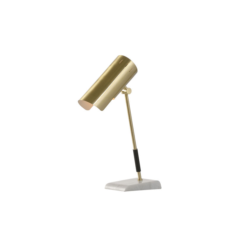 CORBETT DESK LAMP WILL ILLUMINATE YOUR HOME OFFICE WHILE ADDING A MODERN MASCULINE VIBE. WHILE IT TAKES UP MINIMAL SPACE ON YOUR DESK, THE ADJUSTABLE CYLINDRICAL SHADE DIRECTS AMPLE LIGHT FOR THE TASK AT HAND. THE WARM BRUSHED BRASS FINISH, NATURAL MARBLE BASE AND WRAPPED LEATHER DETAILING COMBINE TO CREATE A SOPHISTICATED LIGHT SOURCE.