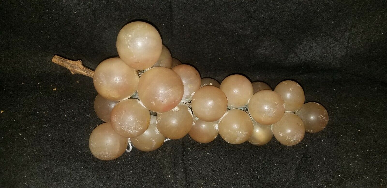 X-LARGE ANTIQUE ALABASTER STONE FRUIT GRAPE GRAPES CLUSTER wood stem